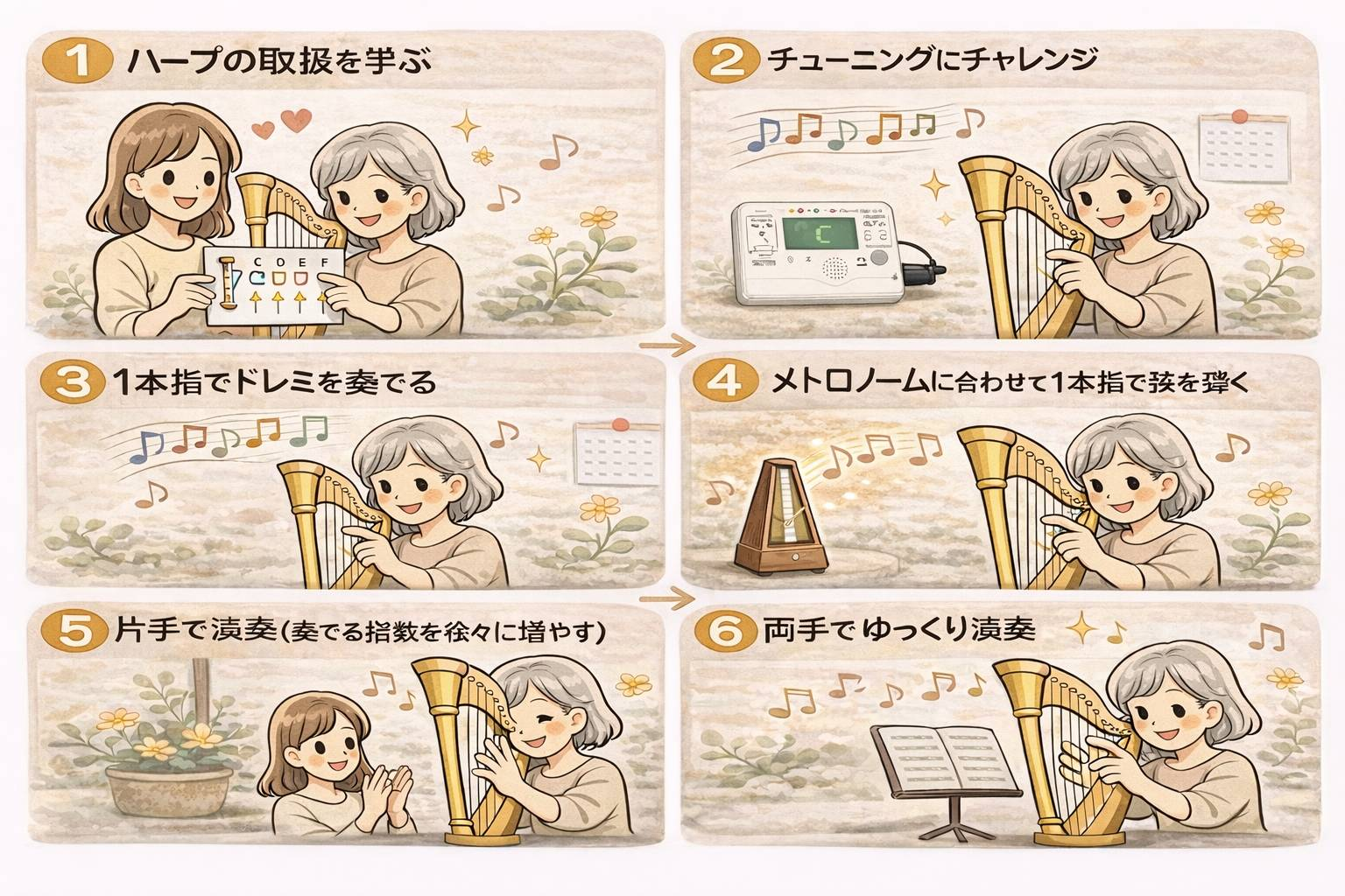 「楽器は初めて」「音楽は久しぶり」 という方のためのハープ教室です。