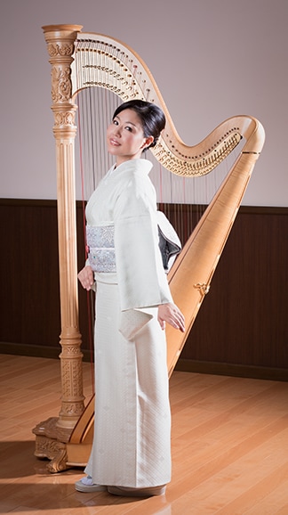 ハープ奏者の久野綾子はクラシックと着物を融合させ